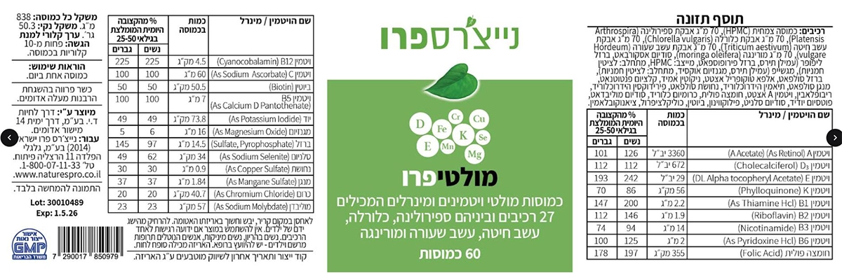 • חדשנות פורצת דרך: שילוב ראשון מסוגו של מולטי-ויטמינים עם 5 אבקות ירוקות להעצמת הספיגה.